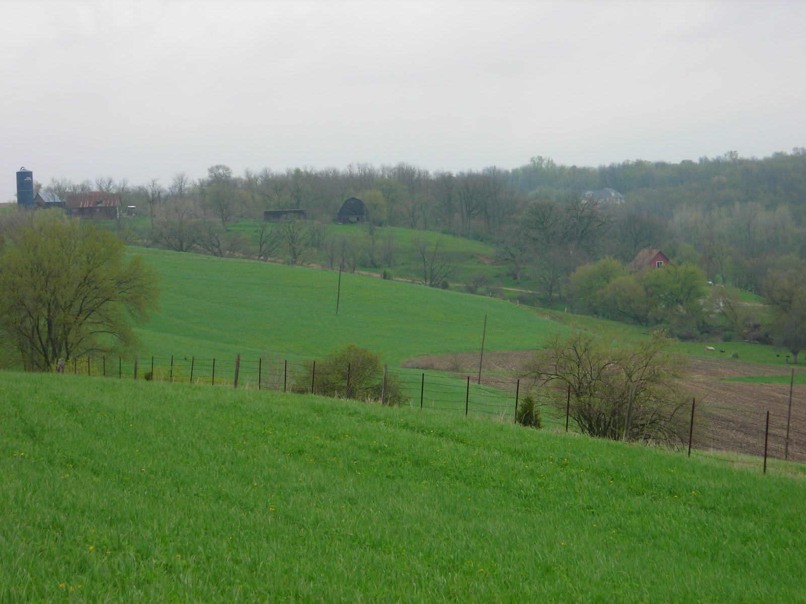 Morton Buildings started framing as soon as the ground was thawed enough to put the foundation posts in concrete. The alfalfa field is filling in around the new construction in spring's vibrant green hue.